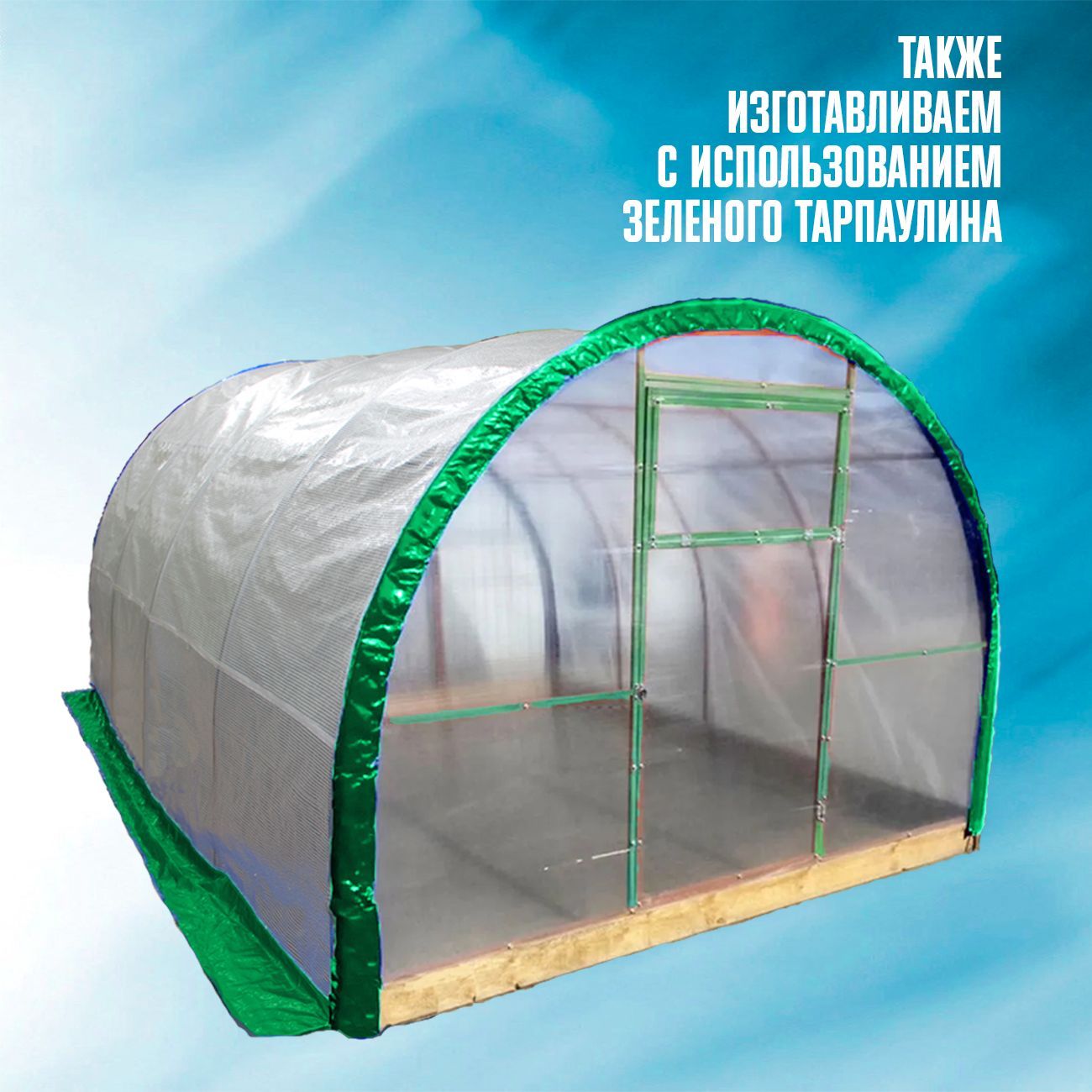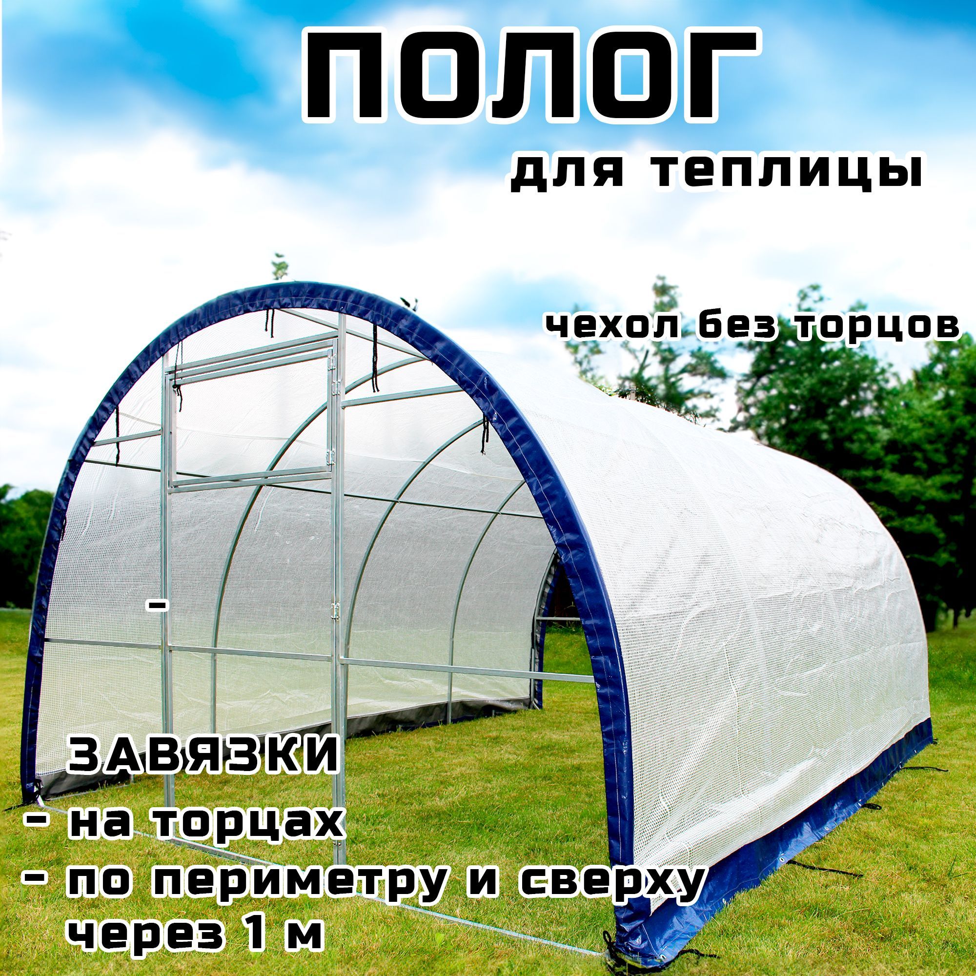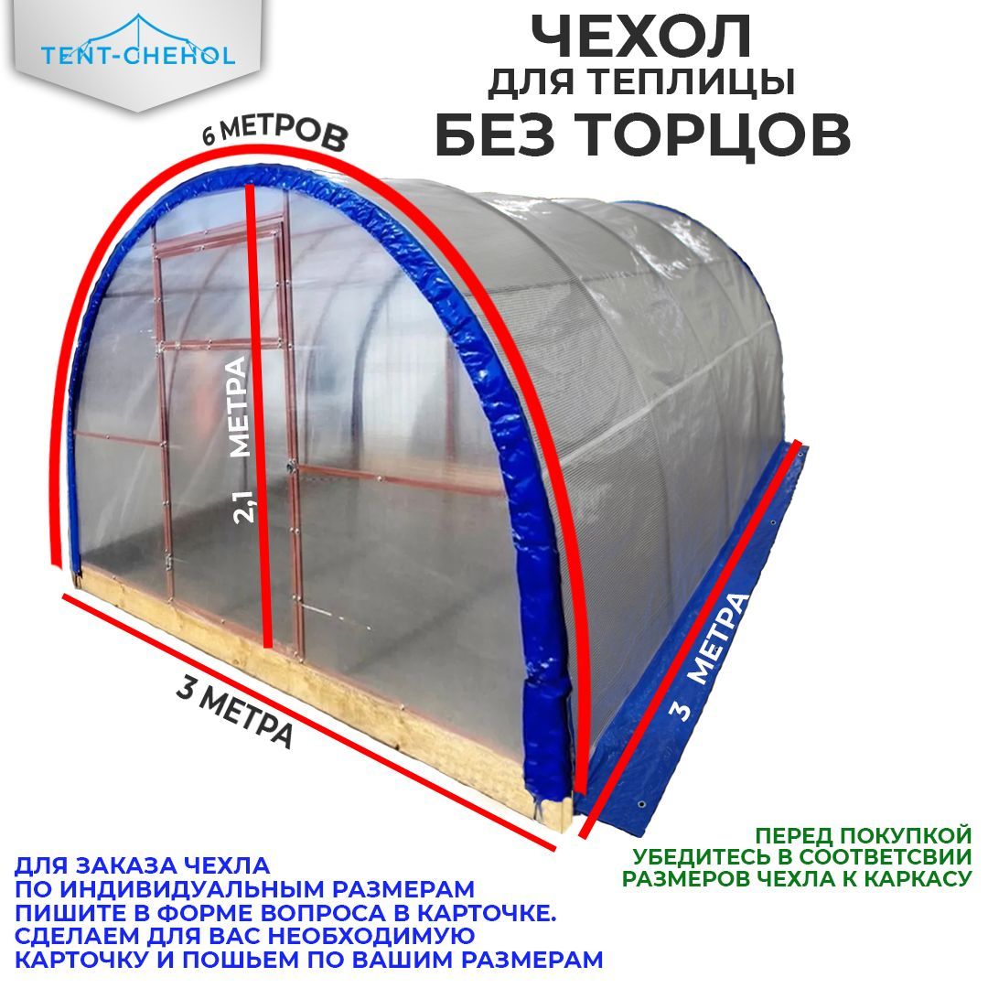 · Чехол не имеет торцов, дверей и форточек нет. Полог накрывает основную часть теплицы, кроме торцов;