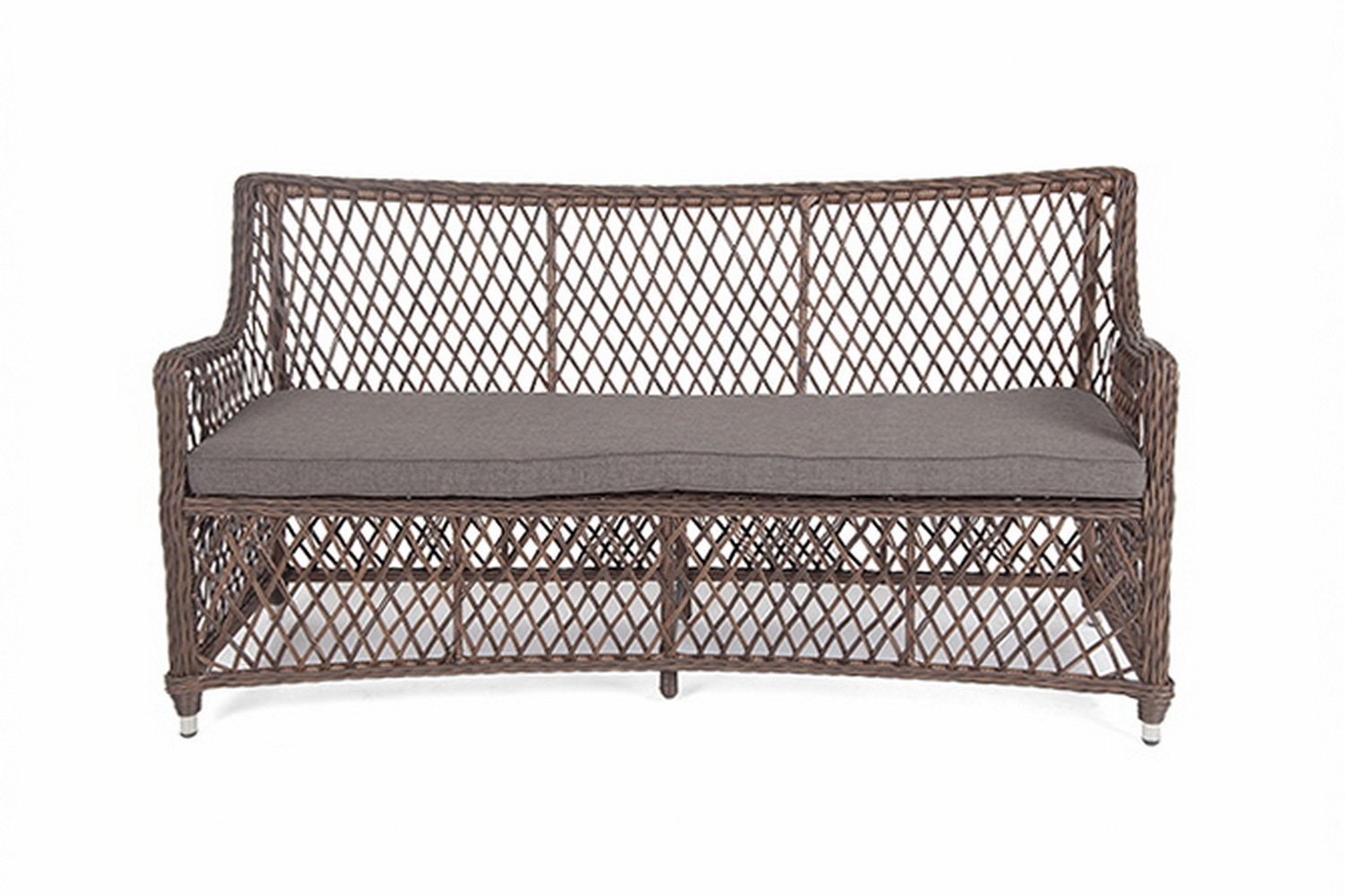Двухместный диван 4SiS Латте имеет габаритные размеры 160х85х66 см, цвет его оплетки – коричневый. Подлокотники дивана и его спинка выполнены редким переплетением из прочного материала, и. так как поверхность дивана в целом не является гладкой, для него необходим удобный и мягкий матрас.