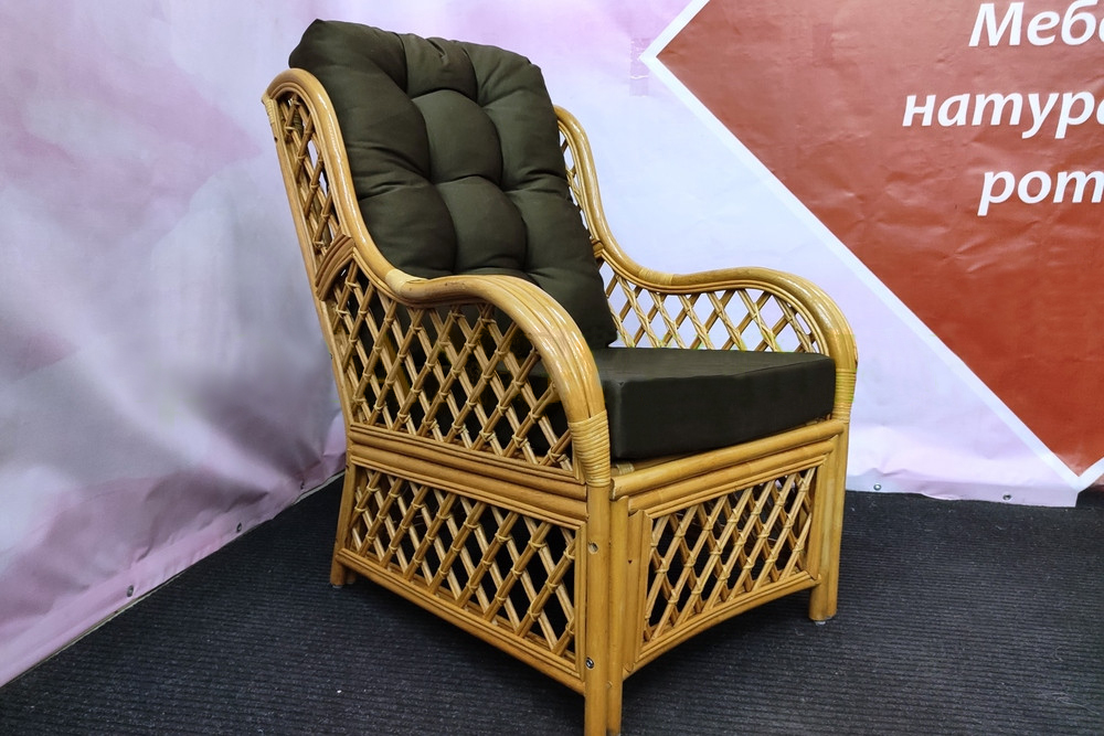 Мы предлагаем вам приобрести подушки, предназначенные для кресла из натурального ротанга «ФРАНЦИСКО», данные подушки выполнены в тёмно-зелёном цвете, но могут иметь и другие цвета. Изготовлены подушки из ткани грета, в качестве наполнителя используется синтешар первого сорта и поролон. Подойдут такие подушки для кресла, ширина которого составляет 70 см, глубина 93 см, а высота 99 см.