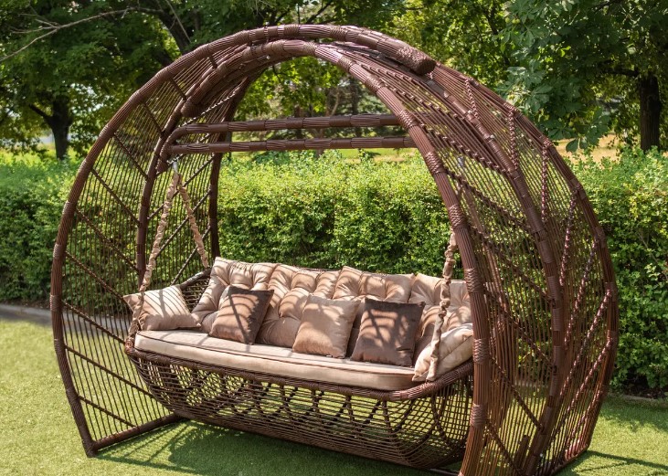 - Другой популярный материал для садовой мебели - это нейлон. Нейлоновые ткани отличаются высокой прочностью и устойчивостью к истиранию. Этот материал также имеет небольшой вес и легко чистится. В качестве наполнителя нейлоновые волокна могут использоваться для обеспечения мягкости и комфорта.