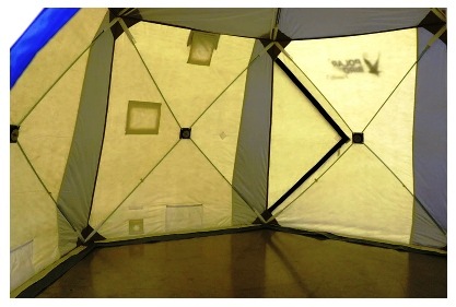 • Герметизация клеевой пленкой не дает полу для зимней палатки намокнуть, а влаге поступить внутрь конструкции.