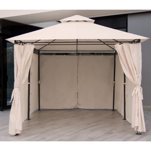 Это плотные шторы, предназначенные для беседки, они имеют бежевый цвет и отлично могут защитить от осадков, а также палящего солнца. В комплекте находится шесть штор, а высота составляет й,9 метра. Изготовлены эти плотные шторы из полиэстера, данная ткань отталкивает воду, а значит вы будете надёжно защищены от капель дождя. Они прикрепляются к каркасу при помощи специальных липучек, между собой они закрепляются на завязках, на них есть молнии. При возникновении вопросов вы всегда можете обратиться к нашим менеджерам, которые ответят на них. Для того, чтобы приобрести данную продукцию, вам просто нужно добавить в корзину необходимое количество позиций.