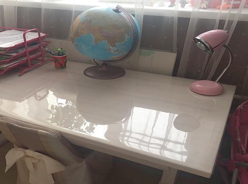 Прозрачная накладка на рабочий стол является стильной защитой для любого стола. Она защищает его от износа, при этом улучшает его внешний вид. Выглядит она как стекло, но по качеству она намного лучше и прочнее. Она гнется, ее можно свернуть, убрать в шкаф. Все это нельзя сделать с обычным стеклом. Она не травмоопасная, так как не имеет острых углов, а также не может разбиться. Такая накладка станет отличным барьером между столом и окружающей средой. Если вы хотите продлить его срок жизни, то такая клеенка точно вам нужна.
